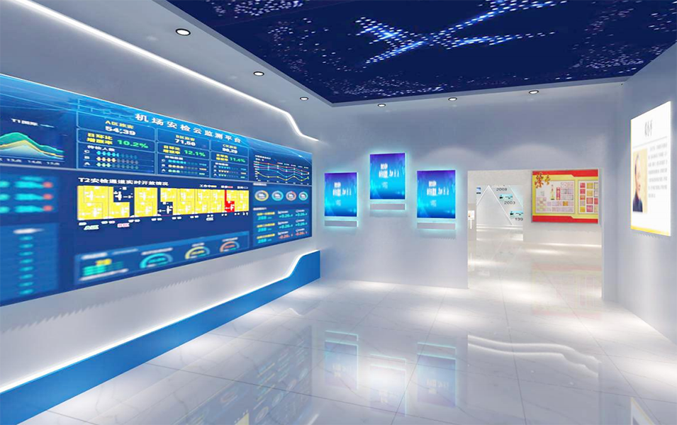 文史馆以展示广西机场管理集团南宁吴圩国际机场的文化历史,企业文化为主。从“发展历史、荣誉、文化、科技”四个方向,凸显集团在发展中的取得的优异成就,结合互动多媒体展示形式,打造人文合一的创新集团文化展厅,让观众切身感受集团的文化。展厅通过声、光、电,图片宣传等形式,展示广西机场管理集团在当今大背景格局下顺应时势,发展壮大取得的光辉成就。