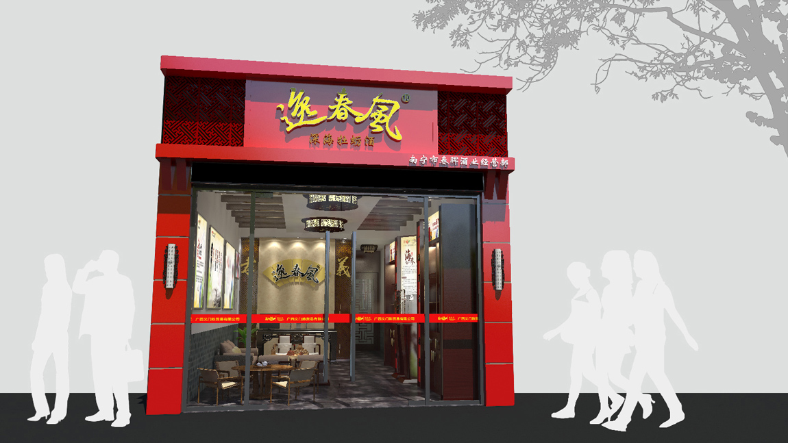 广西大界为逸春风酒进行品牌店面设计